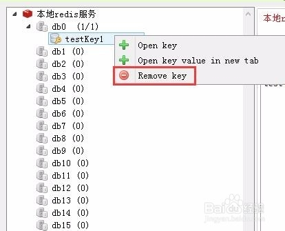 添加完成之后,则可以看到db0下面有个key为testKey1的键,右侧页面可以查看详情