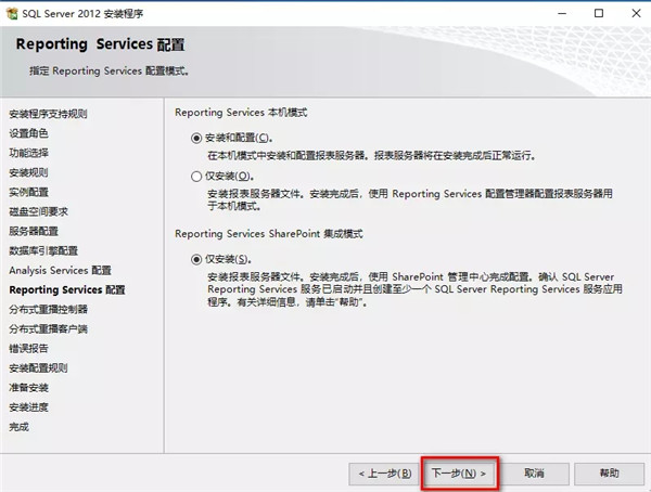 11.Reporting Services配置界面,默认选项,直接点击“下一步”即可。