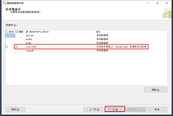 进入选择数据库界面,选择需要复制的数据库,点击下一步。