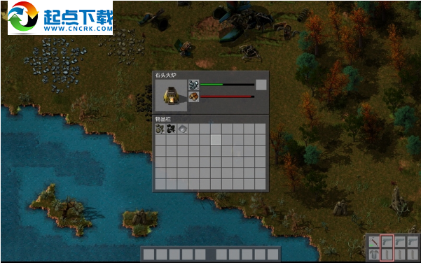 石炉是一种设施,制好会出现在屏幕下方的设施栏里,选取它放置到地面上(显示绿色的位置才能放)。砍伐木头或采集一些煤,点击地上的石炉出现熔炉工作界面,有燃料和材料两种格子,将煤或木头放到燃料格,铁矿放入原料格,开始熔炼。