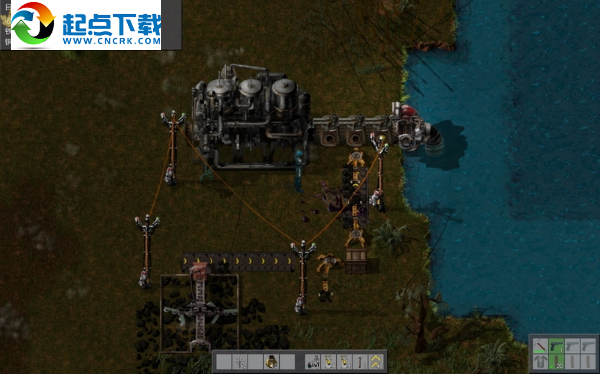 当务之急是恢复电力供给,由于有座太阳能发电厂,初期还是有少量的电力产出的,只是它不能维持大规模的生产线。现在走到湖边找到发电蒸汽机,将缺失的蒸汽机补上,然后将锅炉也补齐连接完整,现在还差燃料了。