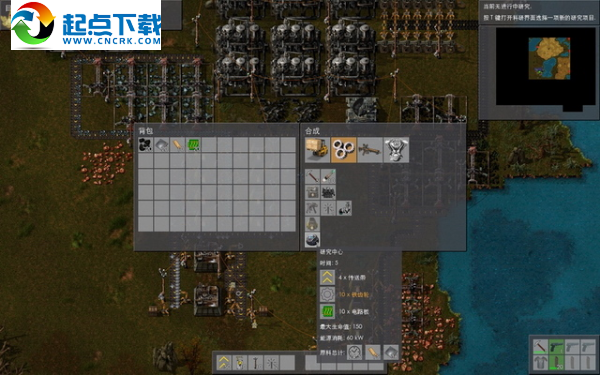 打开制作界面,看到配方进行了分类:仓储和物流、设备、武器装备、零部件……。在“设备”中选择“自动化”,多造几座实验室来研究。