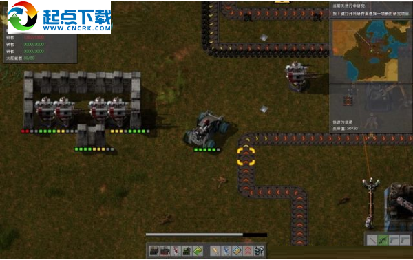 现在开始研发科技,放置实验室开始研发“自动铁路运输系统”,同时量产科技包,科技包1较简单,用两台组装机1型形成一组生产线,由于生产速度缓慢且消耗巨大,可放三组生产线量产。科技包2较为复杂,建议手动制作。