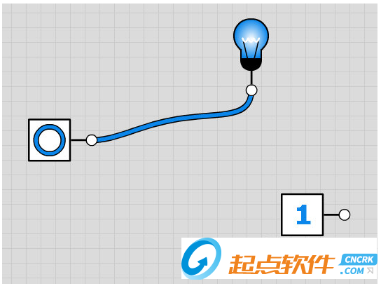 (2)要创建连接,请单击组件的输出引脚(通常位于圆形连接器的右侧),然后将电线拖到未连接的输入引脚上。兼容的引脚将以蓝色突出显示。输入引脚只能连接到单个输出引脚。输出引脚可以连接到许多输入引脚。