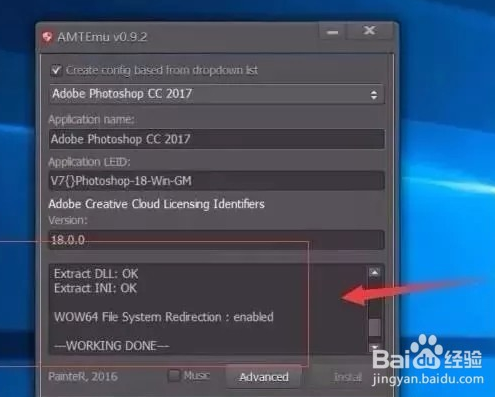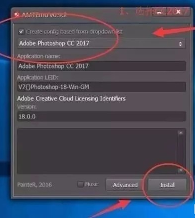 打开PS CC 2018破解文件夹,找到“Adobe破解工具.exe”,鼠标右击选择【以管理员身份运行】,如下图所示,选择Adobe Photoshop CC 2017,再点击【Install】