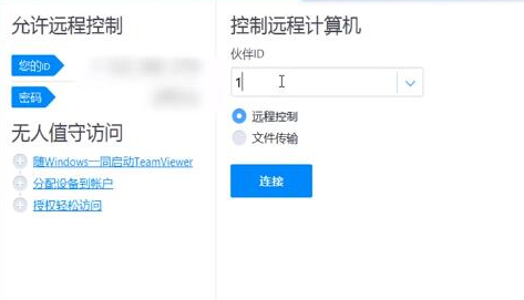 通过输入伙伴ID来远程控制其他人的计算机,当然你可以选择进行远程控制或者文件传输,点击连接后需要输入伙伴所提供的密码。