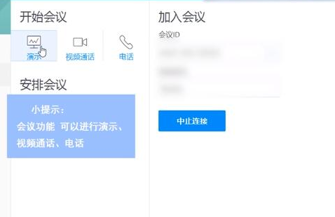 点击相应的功能即可发起会议,点击“加入会议”,输入会议ID,即可加入会议。