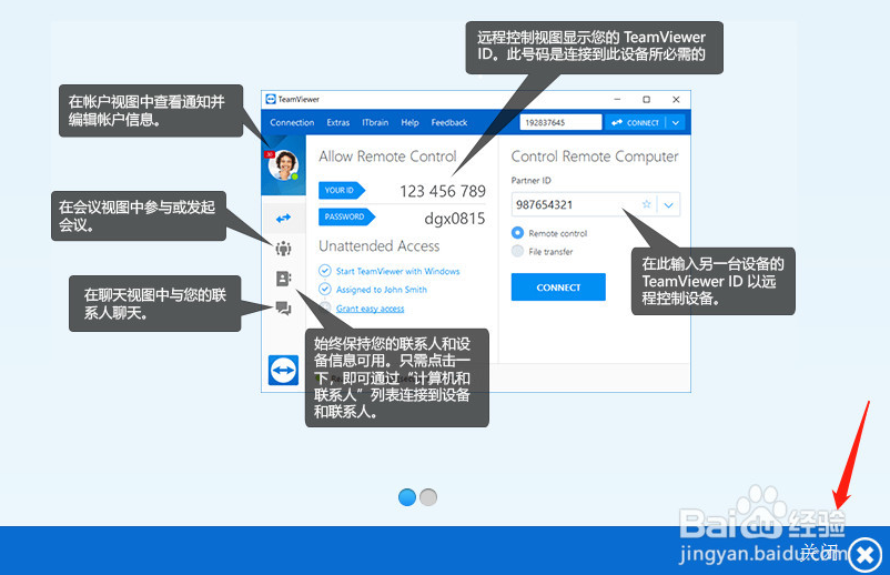 无复杂安装步骤TeamViewer 没有复杂的安装过程,只需要双方都运行TeamViewer记住彼此的ID即可。