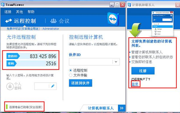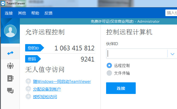 TeamViewer是一个能在任何防火墙和NAT代理的后台用于远程控制的应用程序,桌面共享和文件传输的简单且快速的解决方案。为了连接到另一台计算机,只需要在两台计算机上同时运行 TeamViewer 即可,而不需要进行安装(也可以选择安装,安装后可以设置开机运行)。该软件第一次启动在两台计算机上自动生成伙伴 ID。只需要输入你的伙伴的ID到TeamViewer,然后就会立即建立起连接。