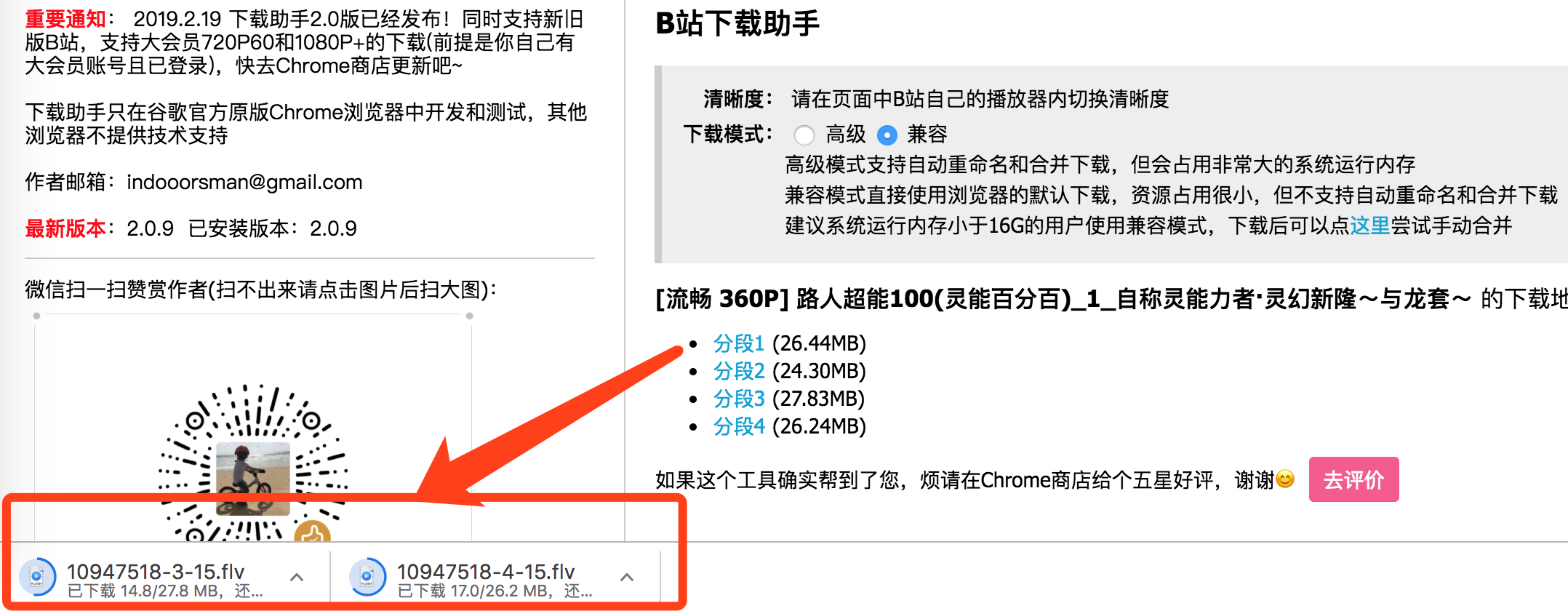 2019.2.19 更新v2.0.0:支持新版B站;不再需要打开开发者控制台了,直接在页面底部显示;支持大会员720P60和1080P+的下载(前提是你自己有大会员账号且已登录);提供2种下载模式
