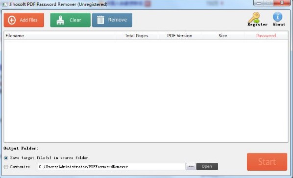 导入受保护的PDF文件后,单击“开始”开始解密。Jihosoft PDF密码删除程序将立即工作以删除用户或打开PDF文件中的密码。