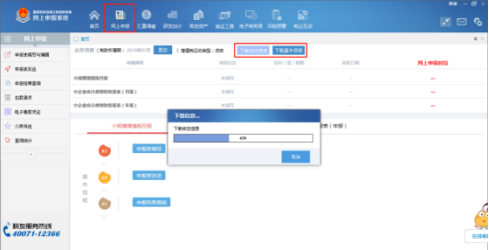 点击“网上申报按钮”,点击“下载基本信息”和“下载核定信息”,以下载税务登记信息、税费种核定信息、备案资格、期初数据等: