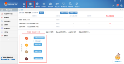 网上申报:主要实现除企业所得税年报汇算清缴申报外的其他税种申报(如:增值税一般纳税人申报、小规模纳税人申报、企业所得税月季报、消费税申报、财务报表申报、文化事业建设费申报等)及扣款功能,并实现包括发票数据、申报数据的查询功能;