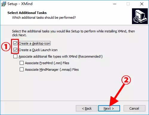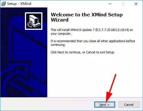 2、下载完成,双击 XMind-8-Update7-Windows.exe 开始安装,点击 Next