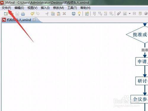 1、要转换文件就需要进行xmind的文件,打开xmind的文件之后,点击xmind的菜单中的“file”。