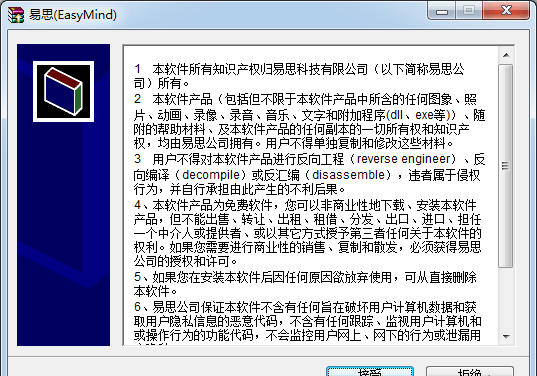 1、到本站下载安装易思,打开安装程序,点击接受继续安装