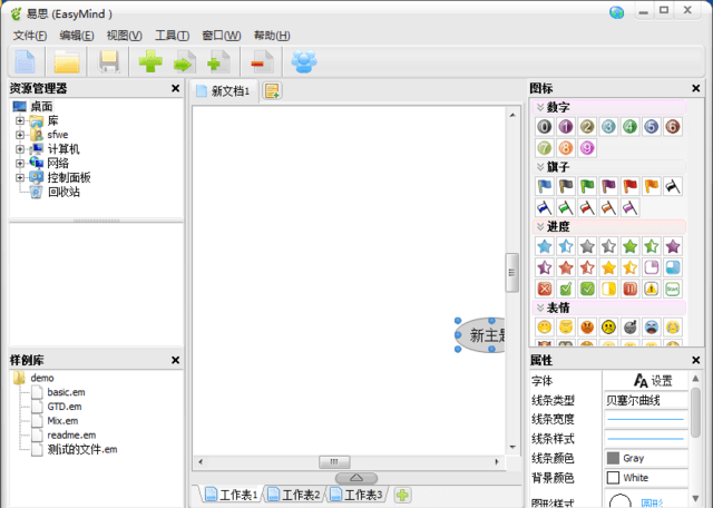 1、易思EasyMind拥有多文档界面,多工作表、多个主题,快速描述问题2、实用的样例库,快速熟悉软件,并可做模板使用