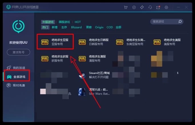 3、点击所有游戏,根据当前的热度这里就会有吃鸡游戏。