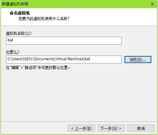 虚拟机名称就改成Kali(自定义),位置这里采用默认的,也可以自定义