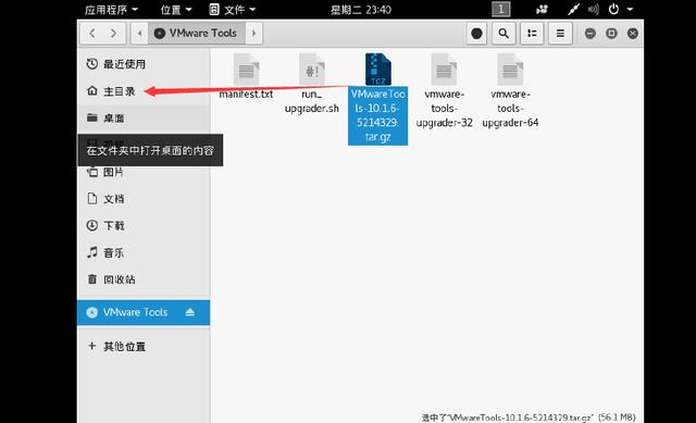 双击打开桌面上那个光盘一样的东东。把压缩包拖到Home去。