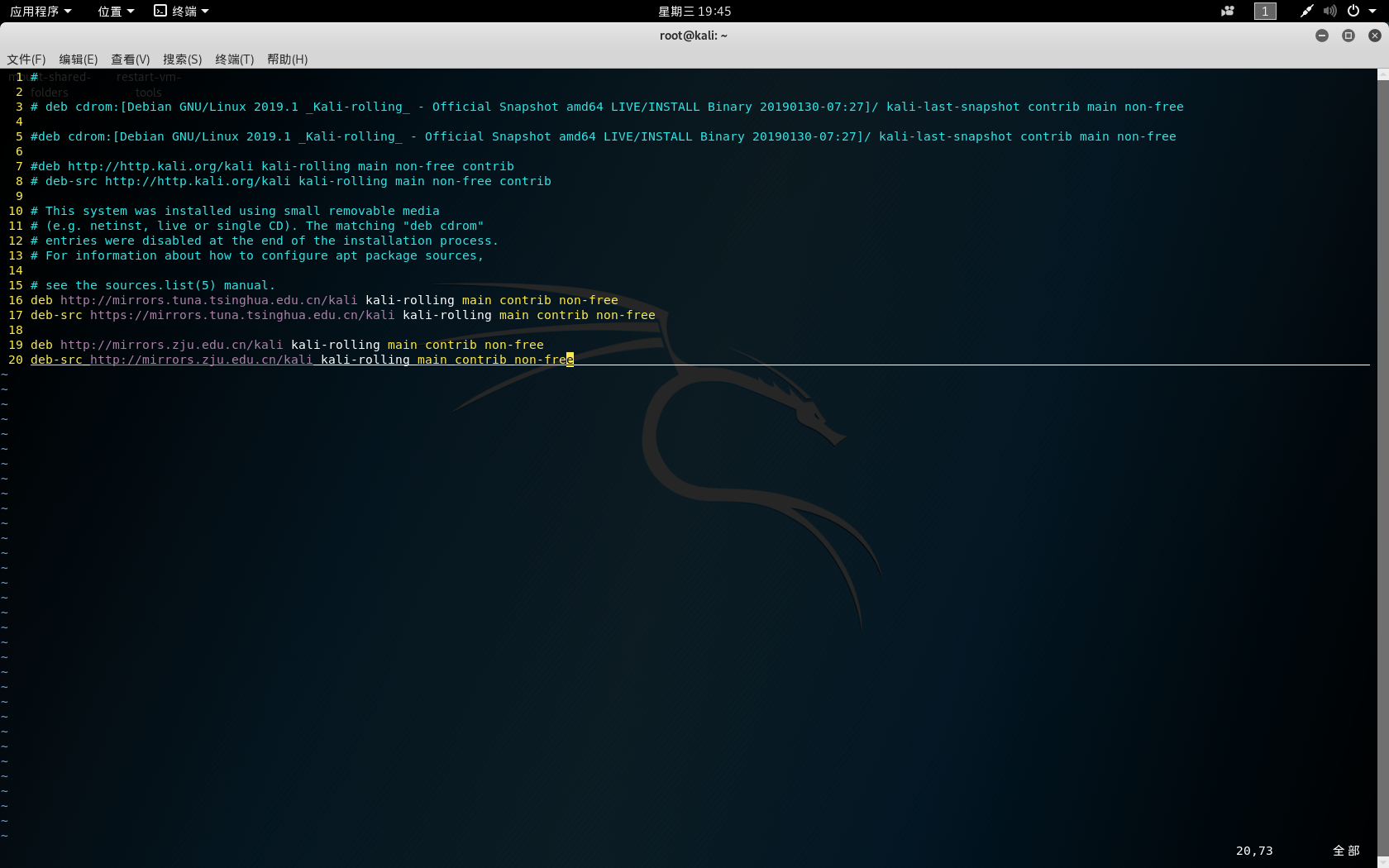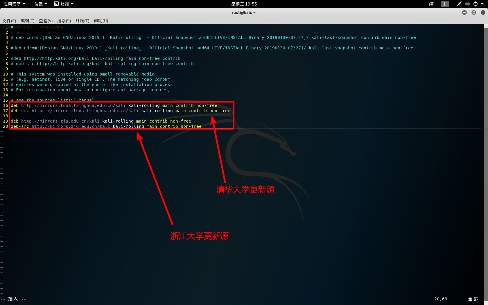 deb http://mirrors.zju.edu.cn/kali kali-rolling main contrib non-free