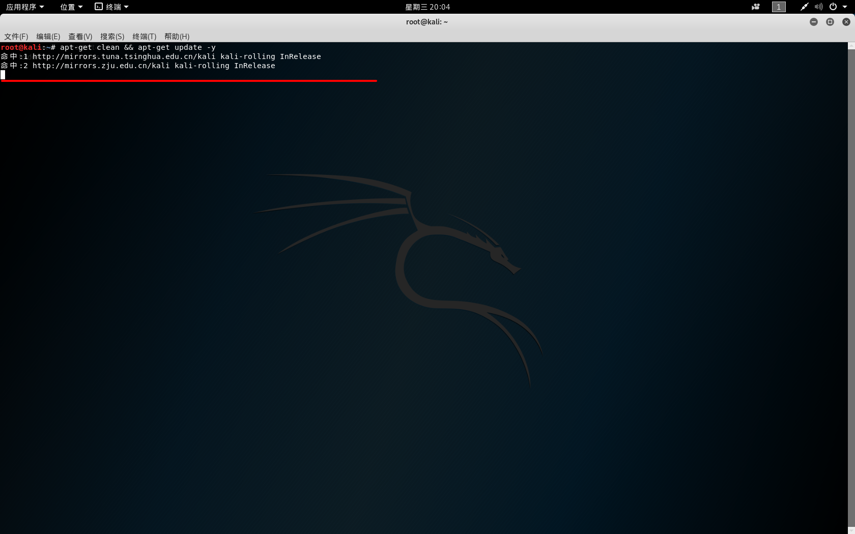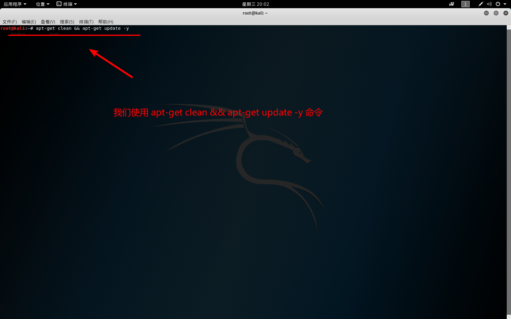 4、输入命令 apt-get clean && apt-get update -y 命令来更新