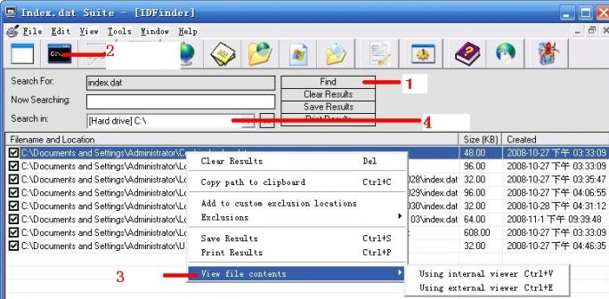 要查看完整的index.dat内容,可以借助工具软件完成。