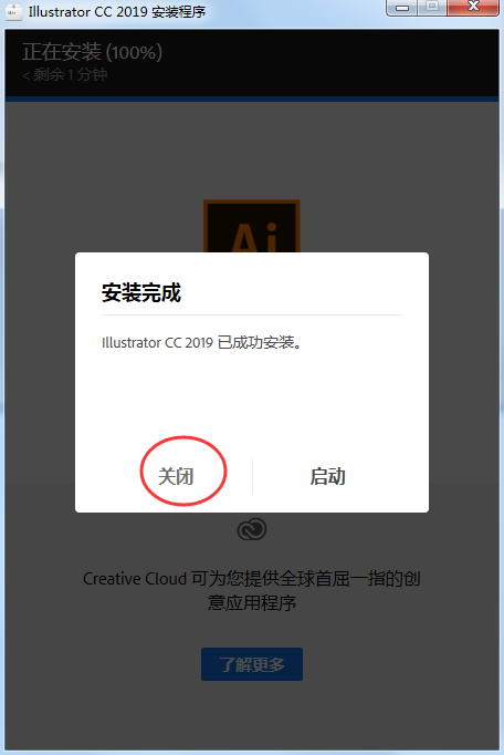 安装完成后点击关闭。