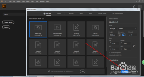 打开AI软件,这里新建一个任意大小的文档作为示范。