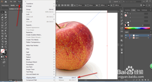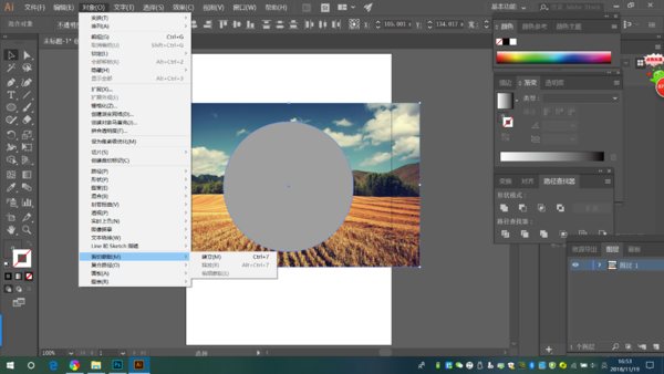这个时候全选两个图层,点击对象-剪切蒙版-制作。