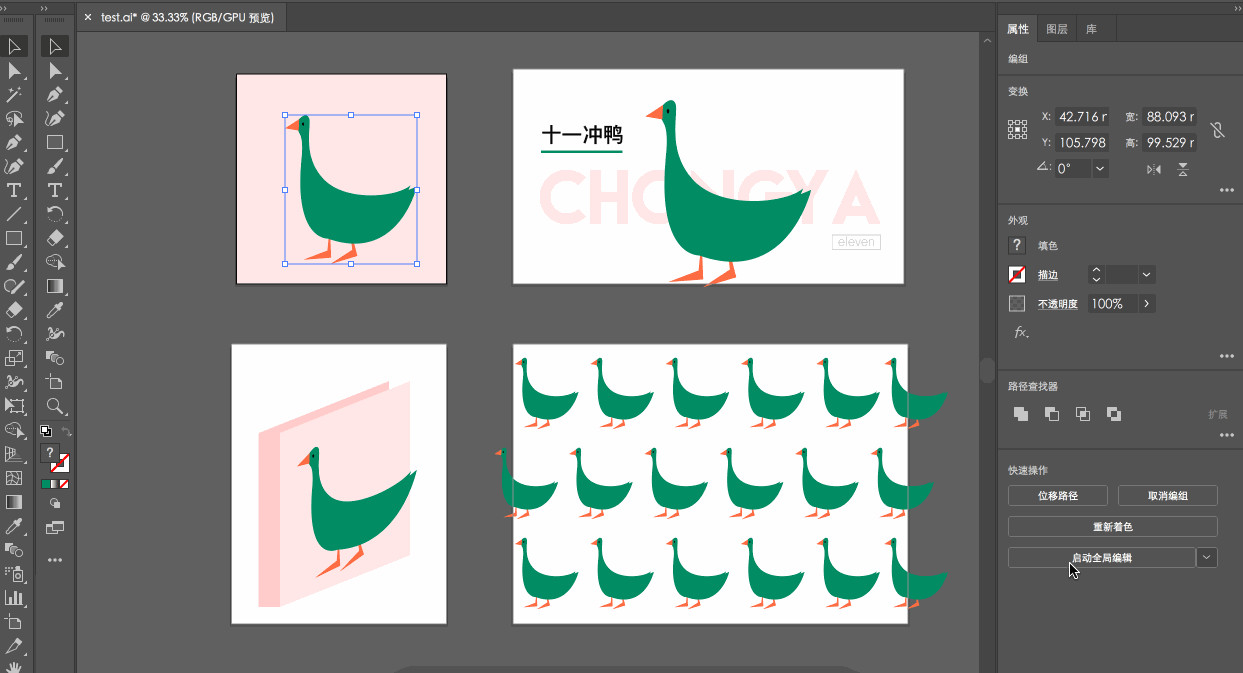 可同时修改多个画板中的类似对象,以节省时间。