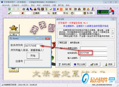 2、安装完成后,运行打字高手主程序,点帮助,注册软件,就会看到注册界面有一个软件序列号如图中序列号为241717498