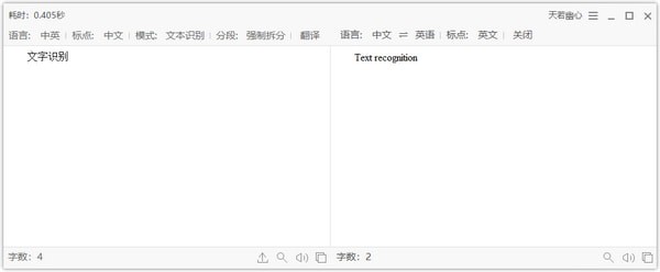 1.天若OCR文字识别软件文字识别截图演示: