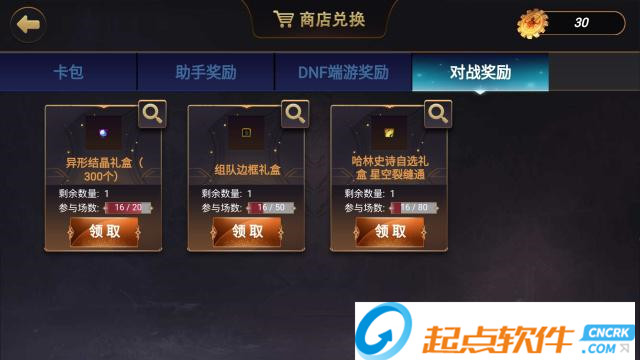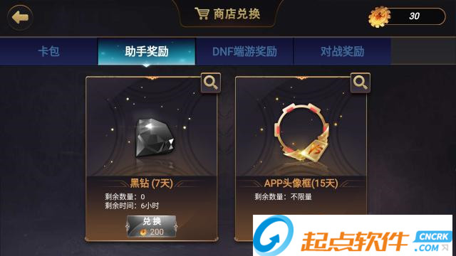 除了上面的奖励之外,我们还可以在助手奖励出用200积分兑换七天黑钻和APP头像框(没什么用),而且还有累积奖励,参与队长20次领取300个异形结晶、累积50次领取组队边框奖励、80次哈林自选礼盒和星空裂缝通行证等。