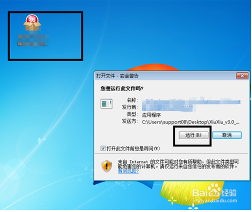 4.文件下载完成后我们可以在刚才设置好的文件保存地找到我们下载好的文件,该文件是一个安装软件,我们双击该软件进行软件的安装,此时会弹出一个打开文件的对话框,在此对话框内我们点击【运行】按钮。