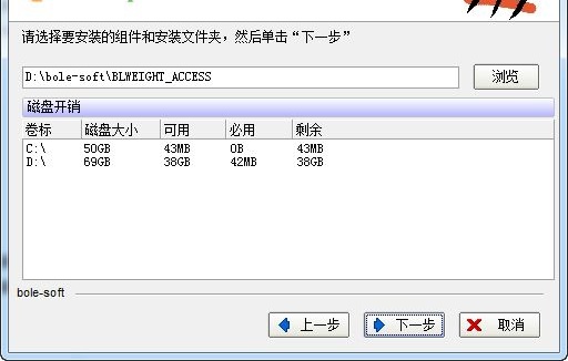 4、选择软件安装路径,这里默认选择D:\bole-soft\BLWEIGHT_ACCESS,点击下一步。