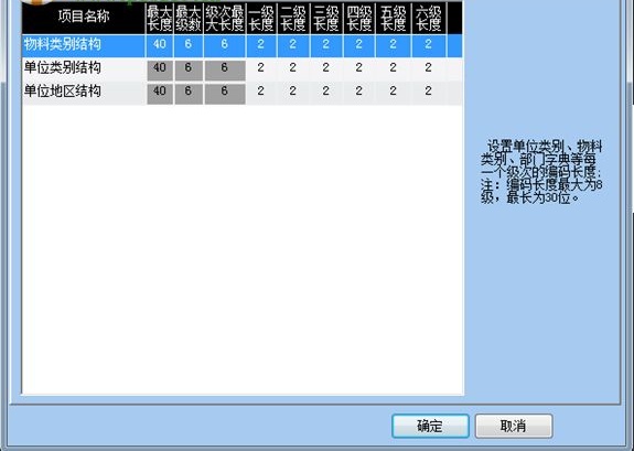 6、设置物料类别、单位类别、单位地区编码级次及编码长度。
