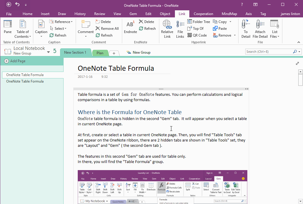 这一功能要求 OneNote 页面里已经提前做好「标题 1,2,3,4,5,6」的层次。点击「链接」选项卡 -「目录」组 -「目录」菜单 -「标题目录」菜单项,Gem 就会根据该页面的标题结构,在光标位置生成目录大纲。并且还会在各个标题的上方,创建「页面顶部」链接,以便快速返回目录大纲。