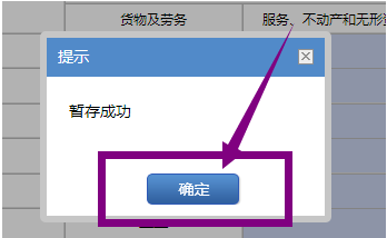 12、这时系统提示,暂存成功,点击“确定”继续。
