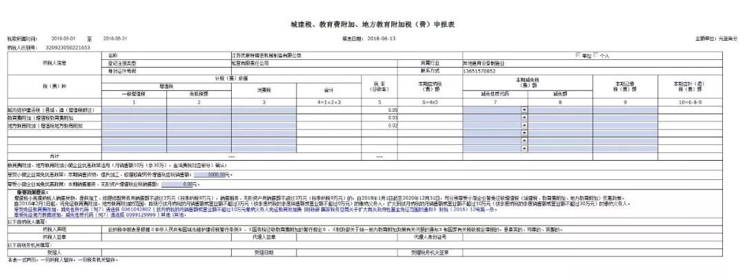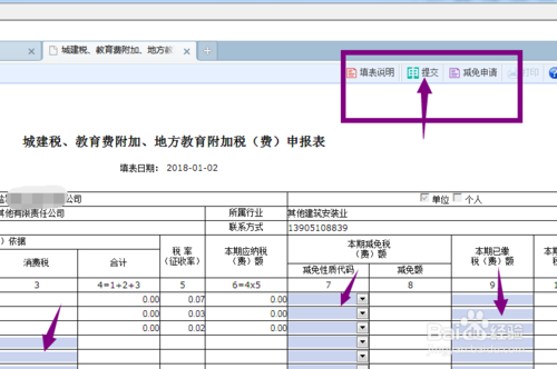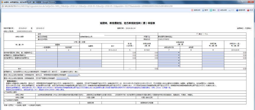 8.弹出城建税、教育费附加、地方教育附加税(费)申报表,根据填表说明进行填写,后点击“暂存”>“提交”,即完成主附税联合申报。