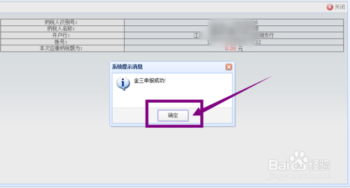 20、随后会出现两个提示框,提示你“金三申报成功”,点击下方的“确定”继续。