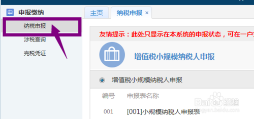 23、我们现在再点击页面左侧菜单栏“申报缴纳”下的“纳税申报”按钮。