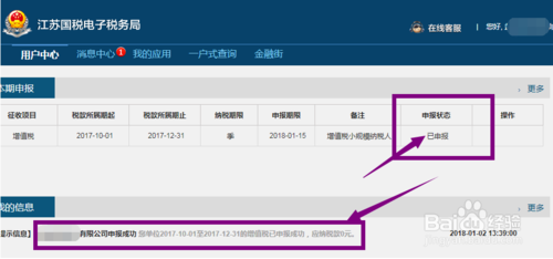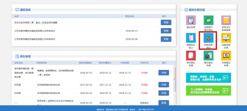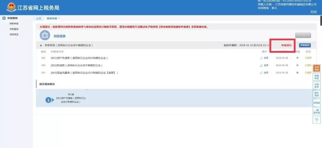 3.申报成功后,申报结果自动录入国税、地税金三系统,完成财务报表信息共享。
