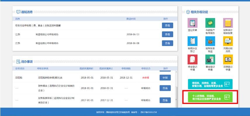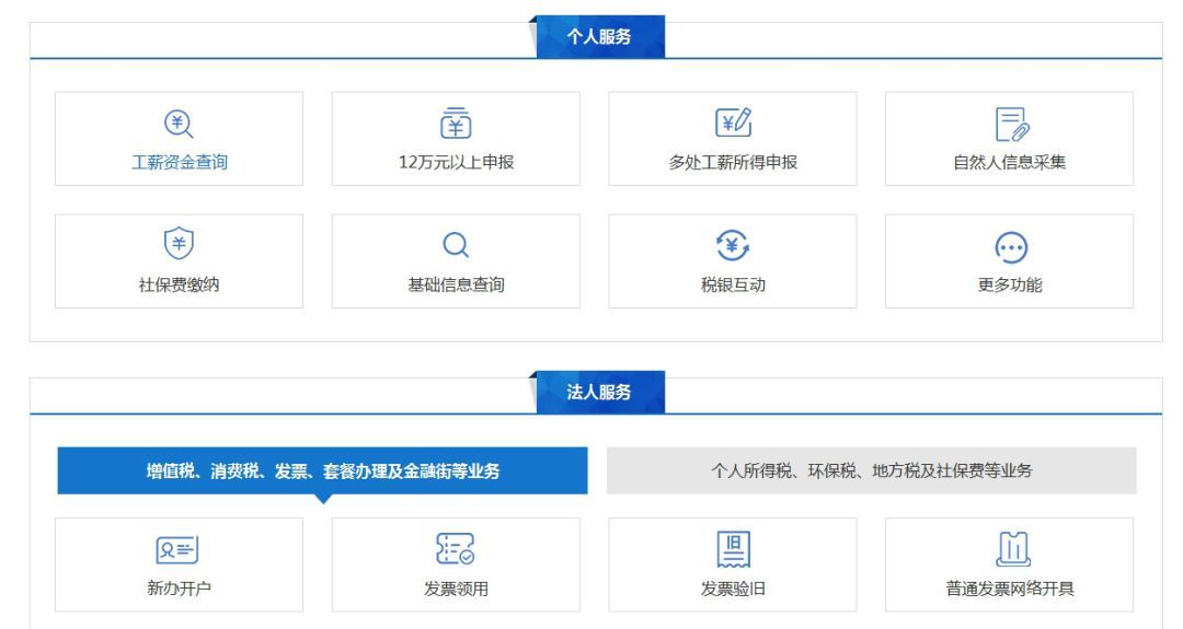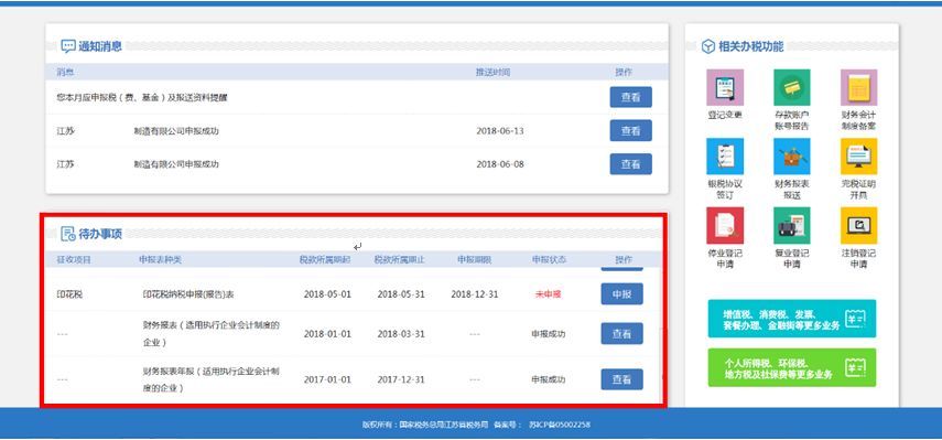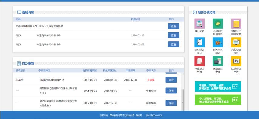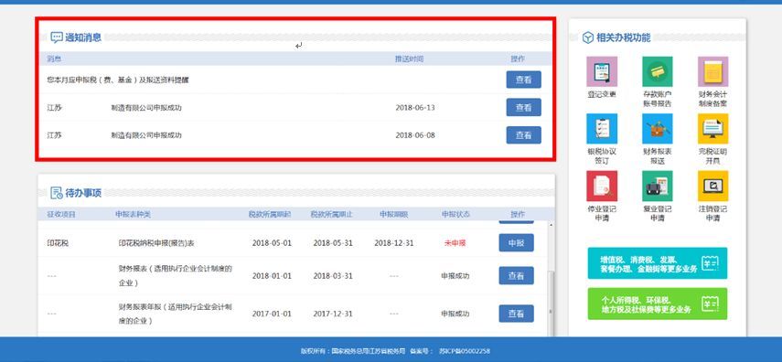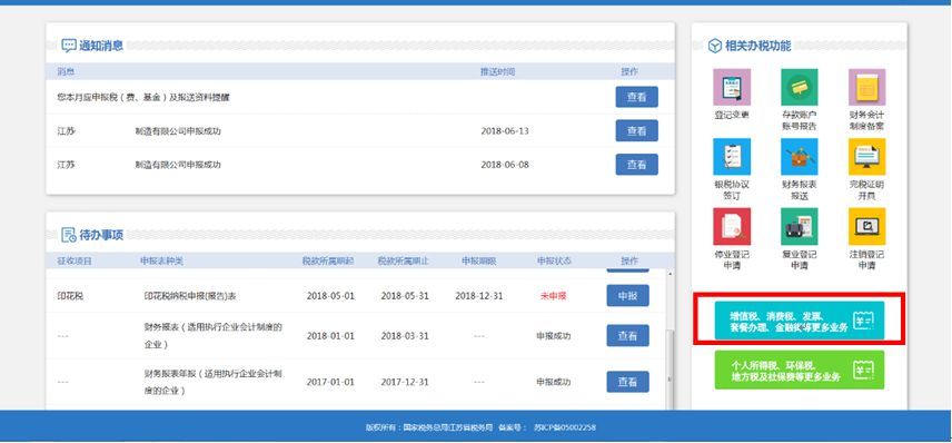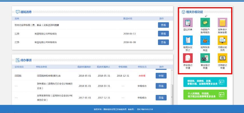 3.相关办税功能区域,纳税人点击相应功能跳转至该功能办理页面