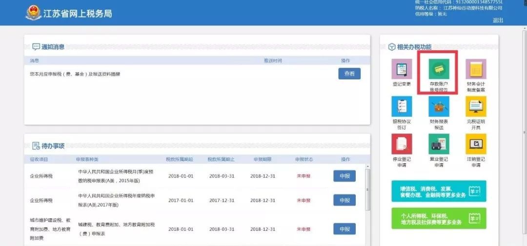 1. 点击右侧相关办税功能栏中“存款账户账号报告”按钮