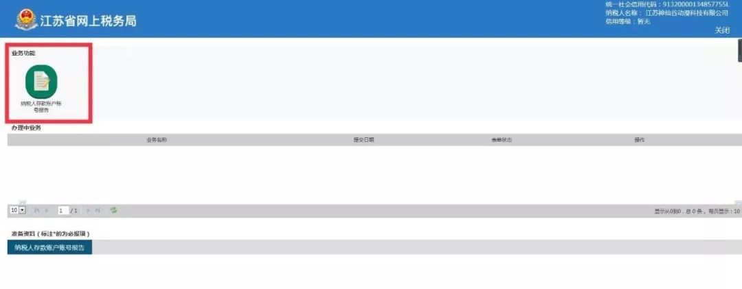 2.点击“纳税人存款账户账号报告”按钮进入操作界面