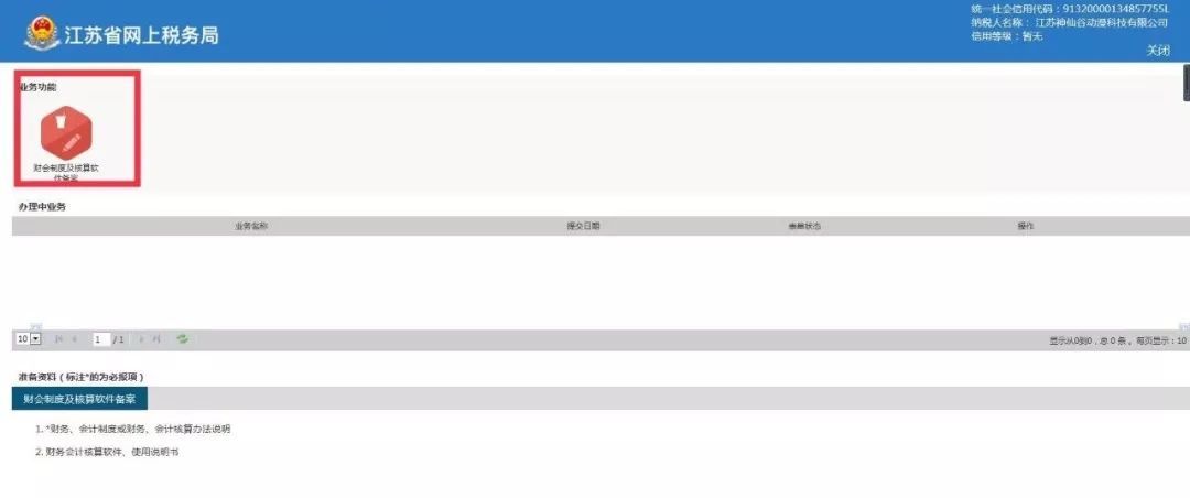 2.点击“财会制度及核算软件备案”按钮进入操作界面