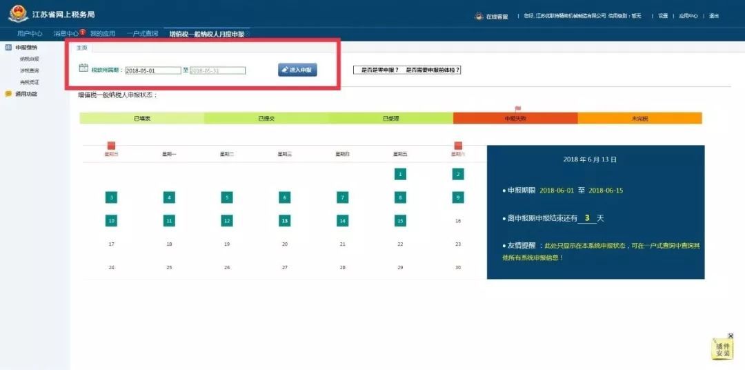 2. 点击“我的应用”>“申报类”>“增值税一般纳税人月度申报”