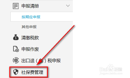 3、点击【申报缴税】后,点击页面左边的【社保费管理】;