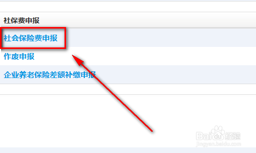 6、再次点击【确定】后,进入到社保申报界面,点击【社保保险费申报】;